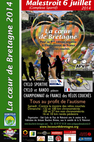 La 9 ème édition de la Coeur de Bretagne aura lieu le dimanche 6 juillet 2014 à Malestroit sur de nouveaux parcours de 132 km, 100 km et 57 km.